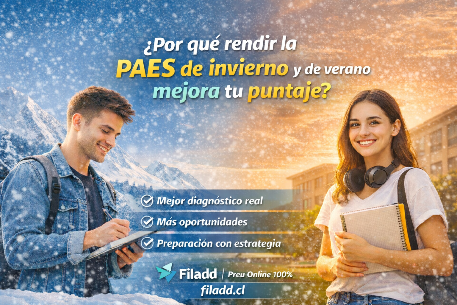 Si quieres rendir la PAES de invierno y de verano con una estrategia clara y enfocada en mejorar tu puntaje, la preparación marca la diferencia. En Filadd te ayudamos a organizar tu estudio, diagnosticar tu nivel real y prepararte con tiempo para la PAES, con un acompañamiento 100% online y flexible.